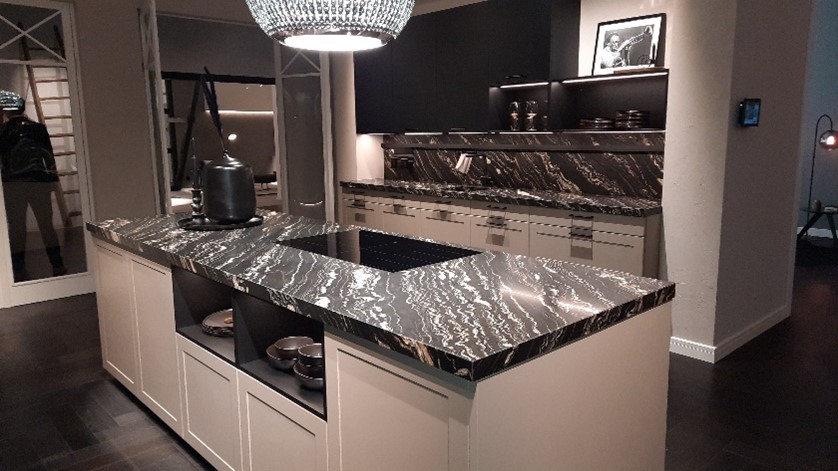 Apporter du caractère à votre cuisine équipée sur mesure est un élément important afin de vous y sentier bien. Comme nous l’avons vu, cet effet peut provenir de portes de placards en bois, mais également via les pierres veinées. Associées à la cuisine équipée américaine, traditionnelle, puissante et majestueuse, les pierres veinées offrent un caractère tout autant inégalable que le plaqué bois.