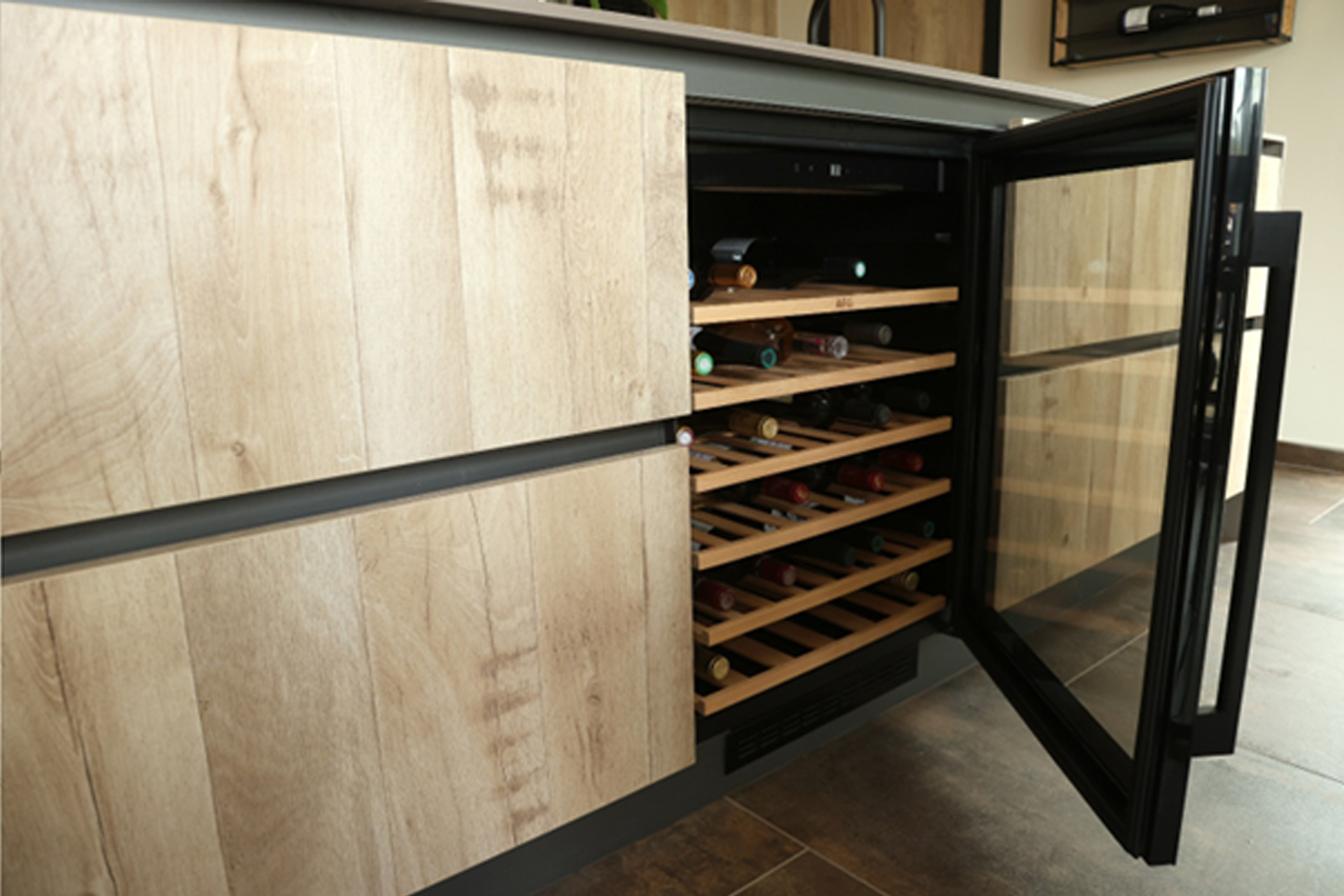 Entre la cave à vins, les meubles vitrés et le plan de travail en CORIAN, rien n'a été négligé !