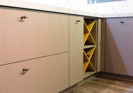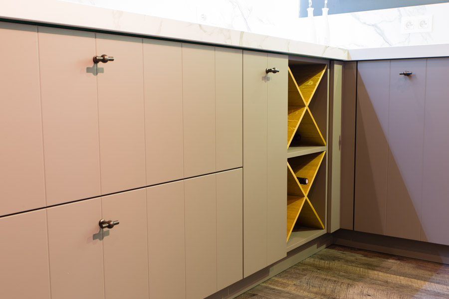 Meubles Cuisine | Meubles en laqué toucher Velours avec un effet de Lambris |